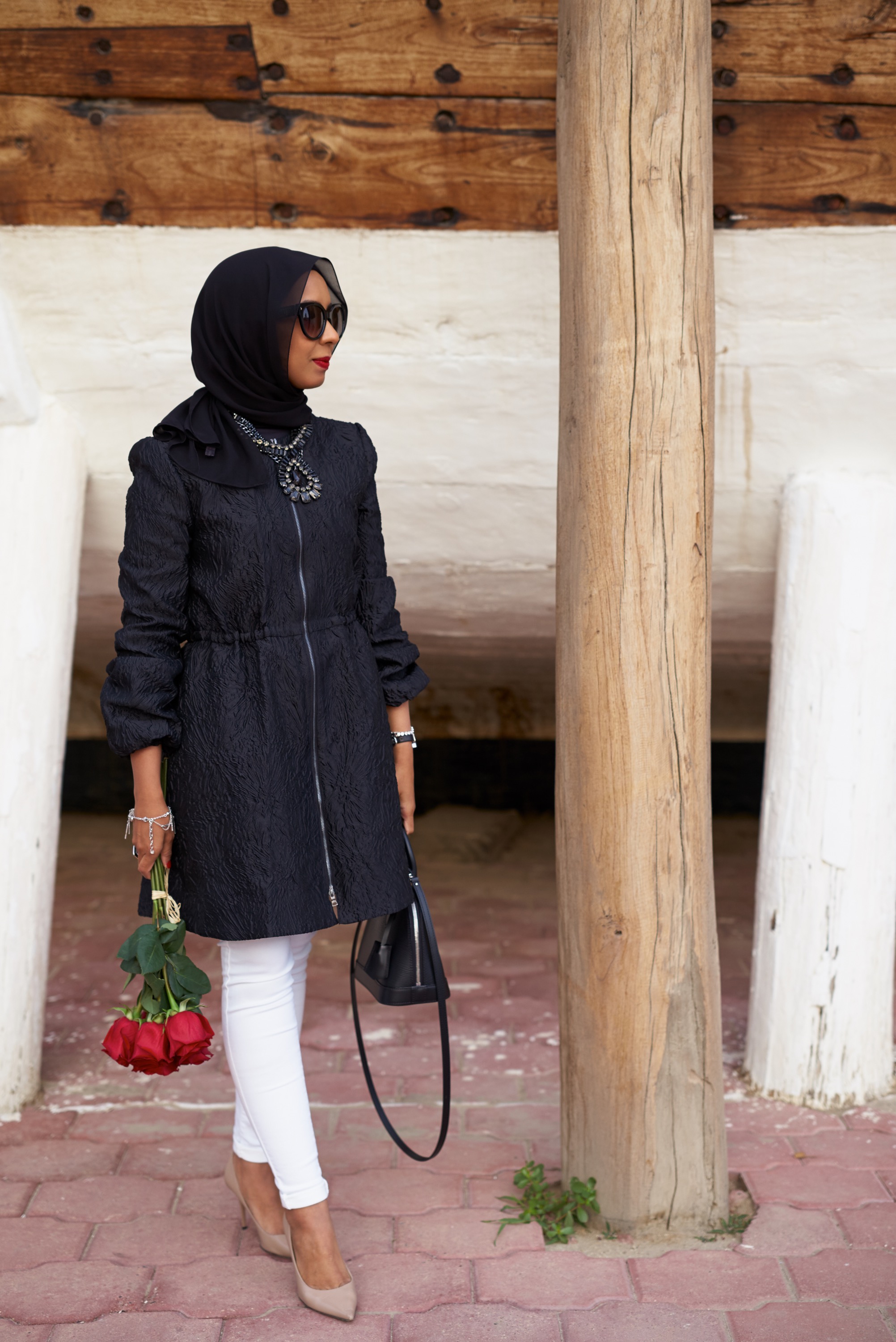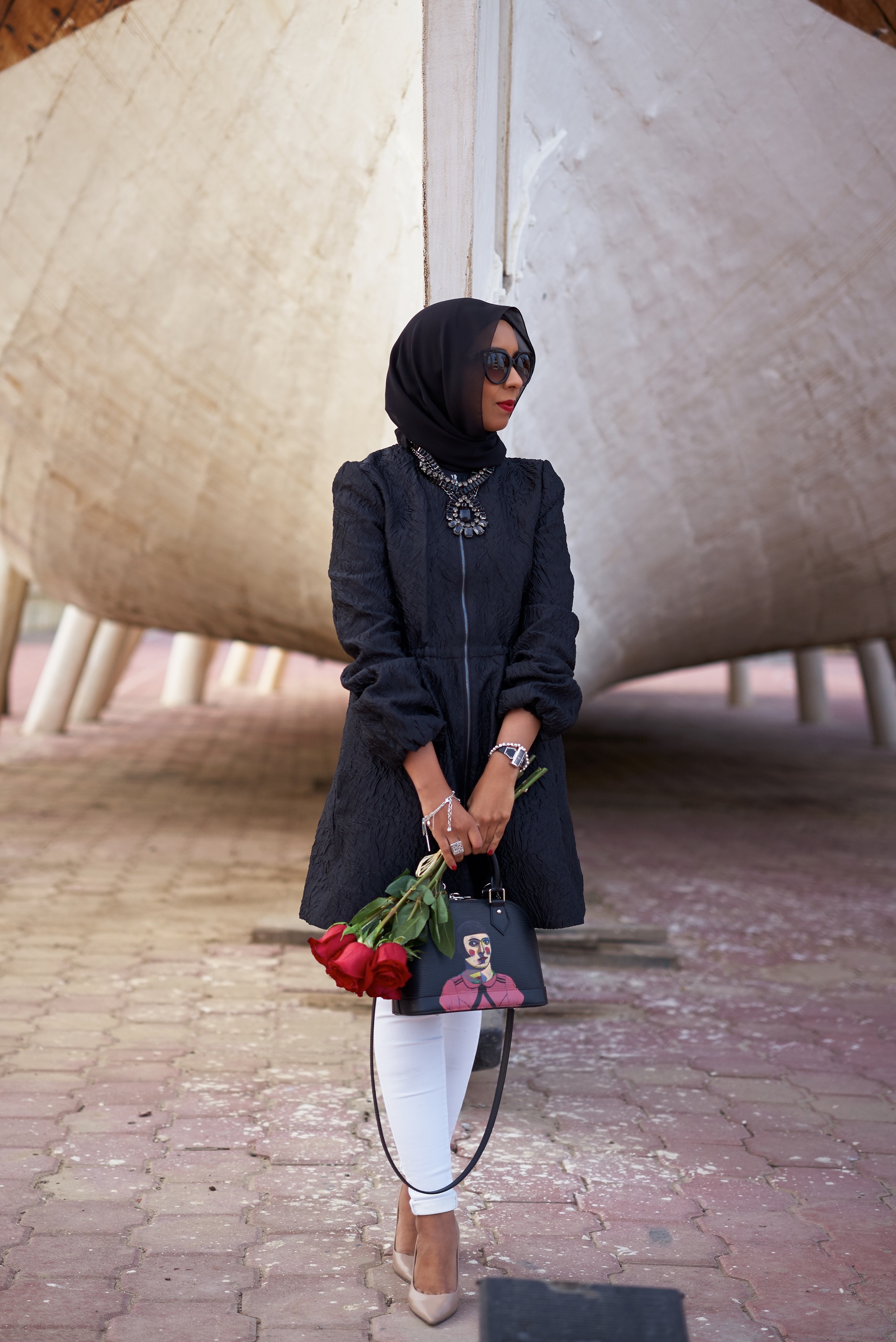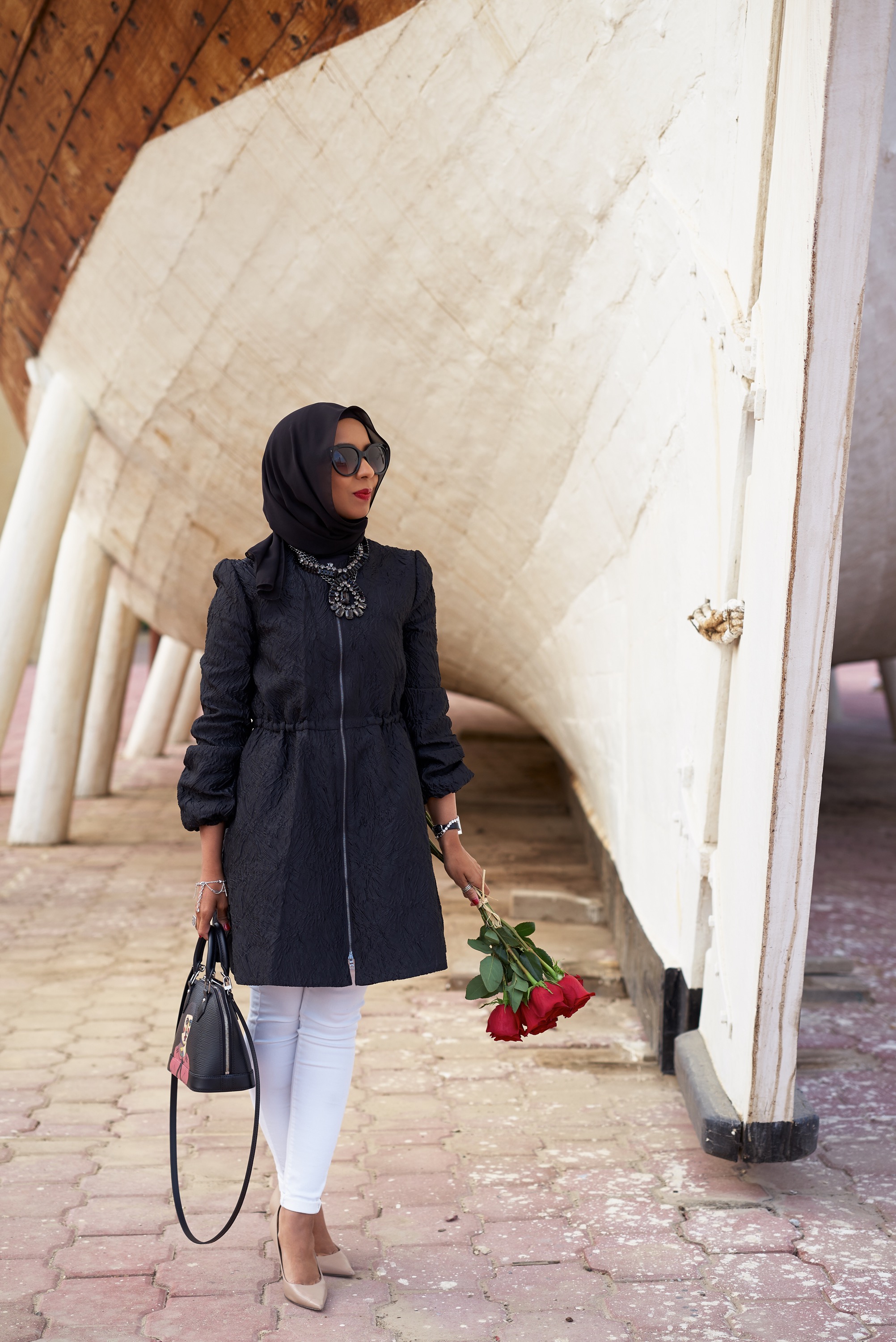 Under The Ships Posted on December 9, 2015December 10, 2015 by Maha Alessa Coat & Necklace: BCBGMAXAZRIA avilable at 360 Mall Pants: TopShop Shoes: Jimmy Choo Bag: Louis Vuitton Pictures by: Bedour AlAwadhi 29.181689 48.073796 Share this: Share on X (Opens in new window) X Share on Facebook (Opens in new window) Facebook Like Loading... Related