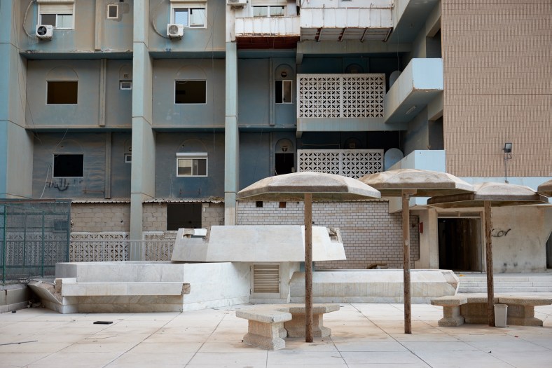 In the heart of Kuwait City, you can easily step into a dystopia created by a utopian belief, as of now it’s a ghost town, although everything is silent and yet the well-thought-of design and details of the space impose an echoing question, why abandon all of this?